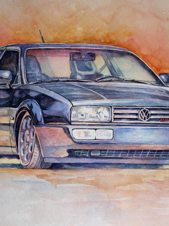 Vw Corrado Vr 6 Watercolour Print By Waldemar Popp Bj 1987 Etsy Uk