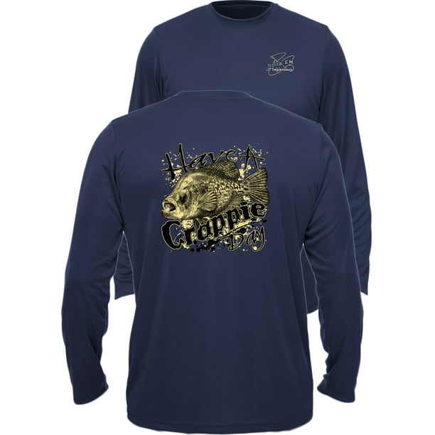 Fishing Performance Long Sleeve Shirt Men S Uv 44 Sun Protection Cooling Polyester Have A Crappie Day Navy Medium Walmart Com
